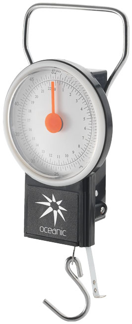 Bagageweegschaal. Weegt bagage tot 25 kg. RVS greep en weeghaak. Ingebouwd meetlint. ABS kunststof.