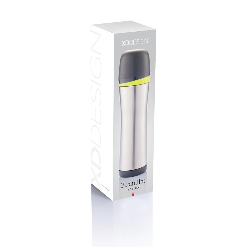Boom Hot vertegenwoordigt de C2C ideologie. Deze 500ml dubbelwandige en vacuum rvs fles is eenvoudig te recyclen. Er is geen lijm gebruikt bij de productie, de materialen zijn makkelijk te scheiden en te recyclen. De fles is afgesloten met een draaidop met geïntegreerde drinkbeker. Geregistreerd ontwerp®.
