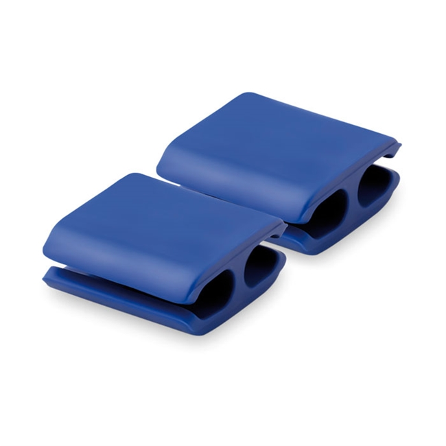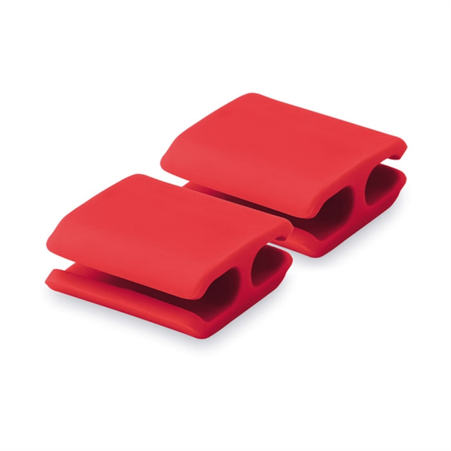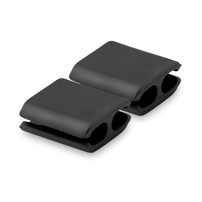 Set van 2 kabel organizers van zacht TPR kunststof, gepresenteerd in een transparant PVC doosje.