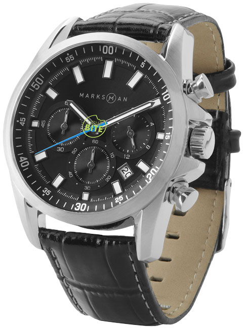 Deze Classic chronograaf horloge van het merk Marksman voorzien wij van uw logo d.m.v. Zeefdruk ter positie van Box – spine top.