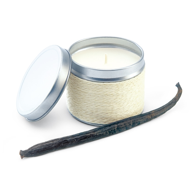 Geurkaars in een decoratief blikje, 6 verschillende aroma’s: koffie, vanille, kaneel, sinaasappel, appel en citroen.