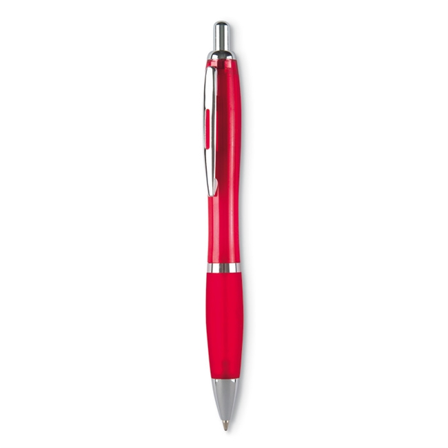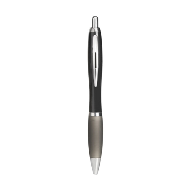 Kunststof balpen met zachte grip. Drukmechanisme. Zwarte inkt.