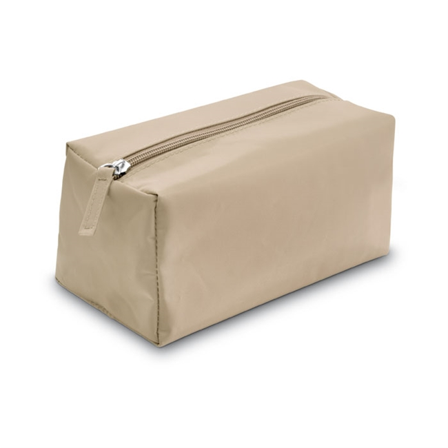 Make-up tasje gemaakt van PVC-vrij 150D polyester met hoge dichtheid, met ritssluiting.