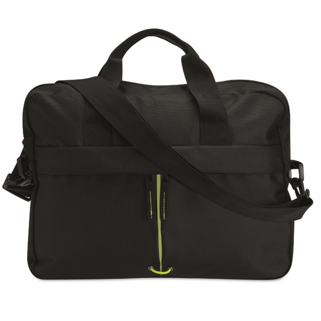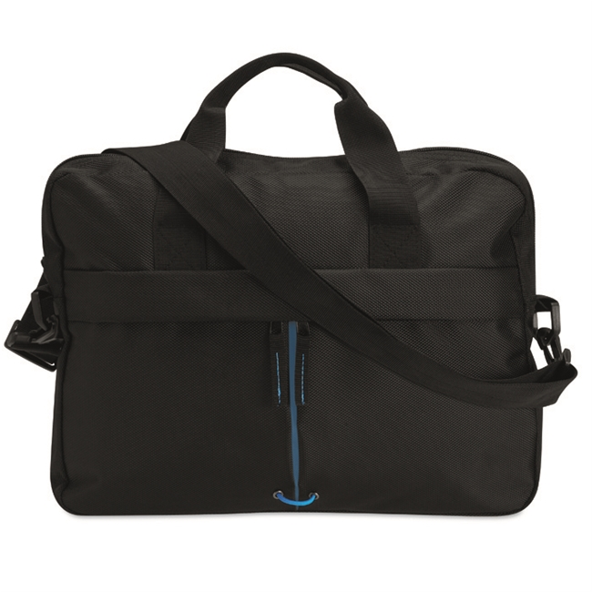 14 inch laptoptas met kleurige details, handvatten en een verstelbare en afneembare schouderband. 1680D polyester.
