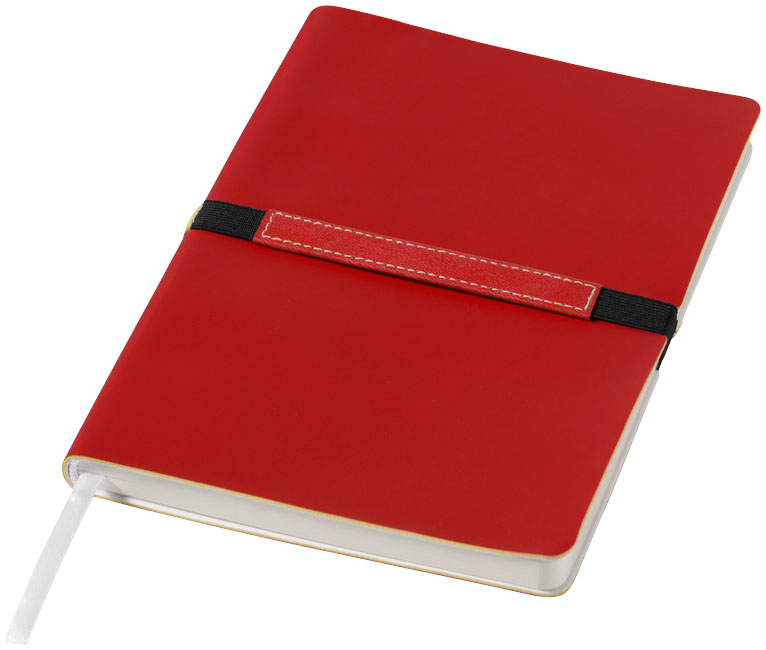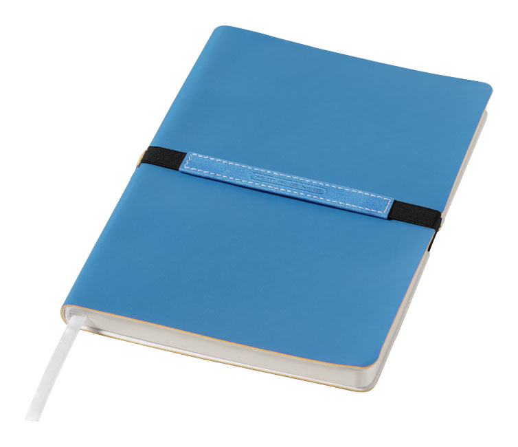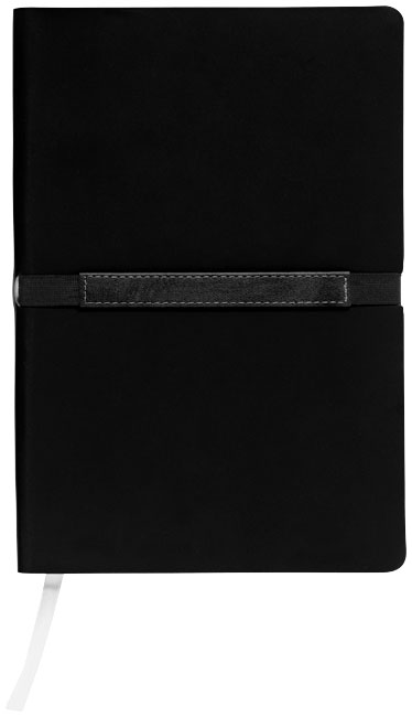 Stretto A5 notitieboek. Verzorgd ontworpen A5 notitieboek met geheel eigen decoratiemogelijkheid op een speciaal gedeelte van de stevige, aan de rug bevestigde elastiekband. Met 96 vel gelinieerd papier (80 g/m²). Geleverd in Journalbooks geschenketui. Thermo PU.