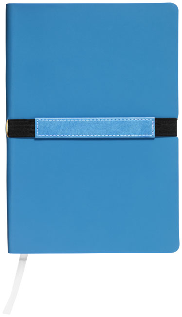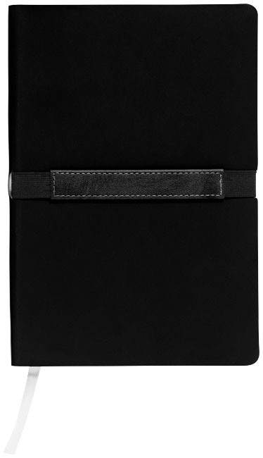Stretto A6 notitieboek. Verzorgd ontworpen A6 notitieboek met geheel eigen decoratiemogelijkheid op een speciaal gedeelte van de stevige, aan de rug bevestigde elastiekband. Met 96 vel gelinieerd papier (80 g/m²). Geleverd in Journalbooks geschenketui. Thermo PU.