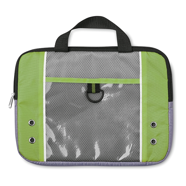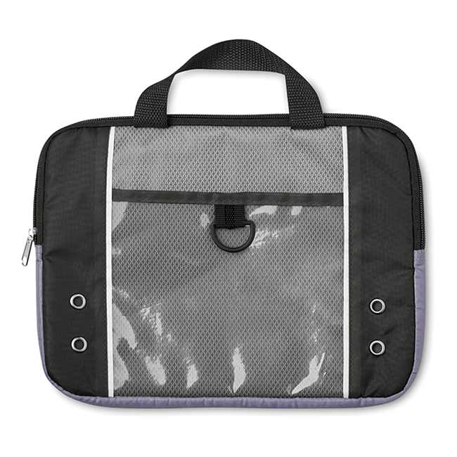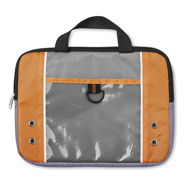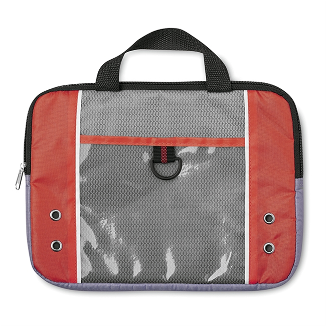 10 inch tablet tas met een transparant open voorvak en handvatten. 210D polyester.
