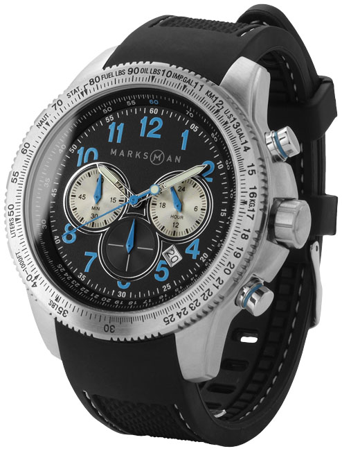 Deze Urban chronograaf horloge van het merk Marksman voorzien wij van uw logo d.m.v. Zeefdruk ter positie van Box – spine top.