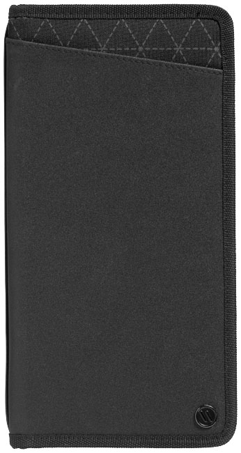 Vapor reisportefeuille. Zakelijk verantwoord reizen met de Elleven™ Traverse collectie. Geen angst voor identiteitsdiefstal dankzij de ingebouwde RFID-technologie. Van alle gemakken voorziene reisportefeuille met sleufvakken aan binnen- en buitenkant voor paspoort en alle andere reispapieren. Gaasvak voor ID-kaart, elastische pennenhouder en extra sleuven voor creditcards en visitekaartjes. Geleverd in Elleven geschenkdoos. Accessoires niet inbegrepen. Ultrahyde textuur-pvc & polyester ripstop.