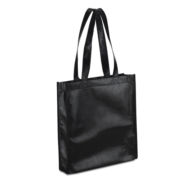 Rechthoekige non-woven shopper met gelamineerde metallic buitenzijde.