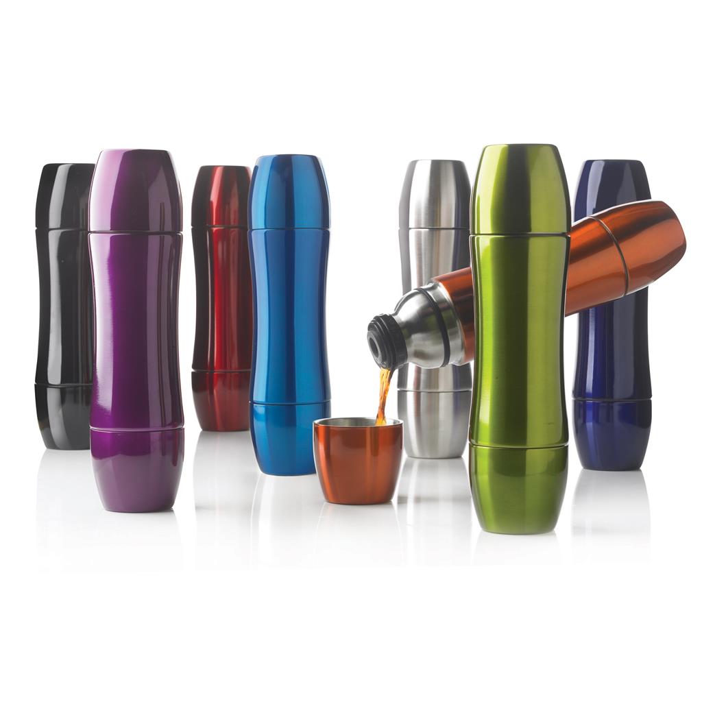 Wave is een 700ml dubbelwandige en vacuüm isoleerfles met een elegant design, onderscheiden met de Red Dot design award. De fles heeft twee bijpassende mokken zodat u perfect kunt genieten van uw koffie of thee. Geregistreerd ontwerp®