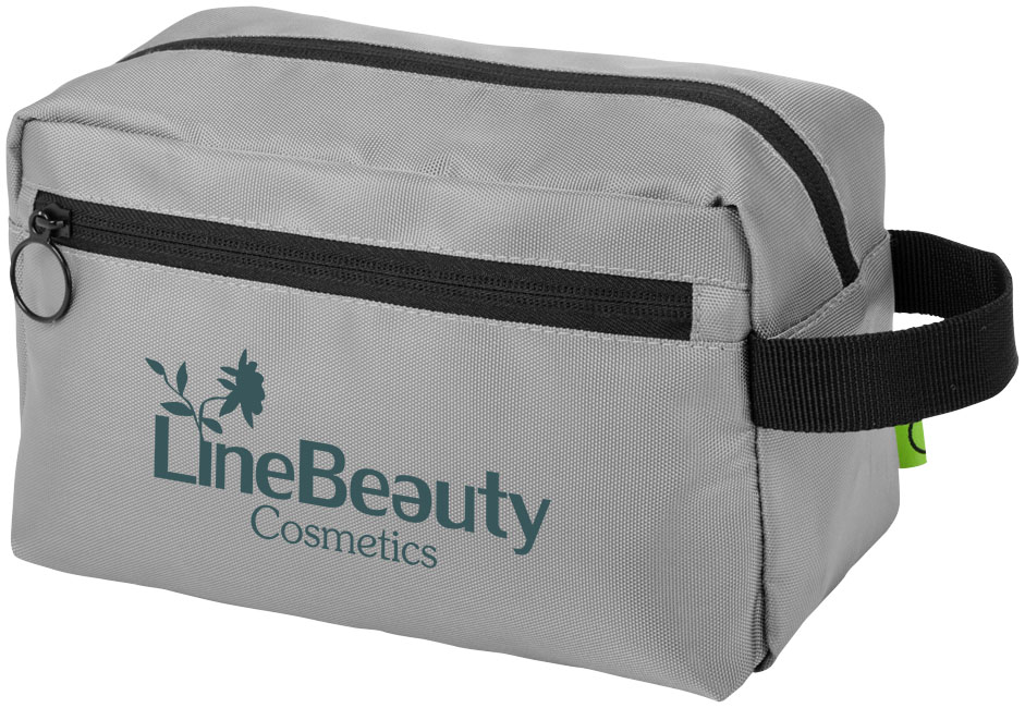 Deze Yosemite toilettas van het merk Avenue voorzien wij van uw logo d.m.v. Zeefdruk ter positie van Piece horizontal, side with strap on top right.